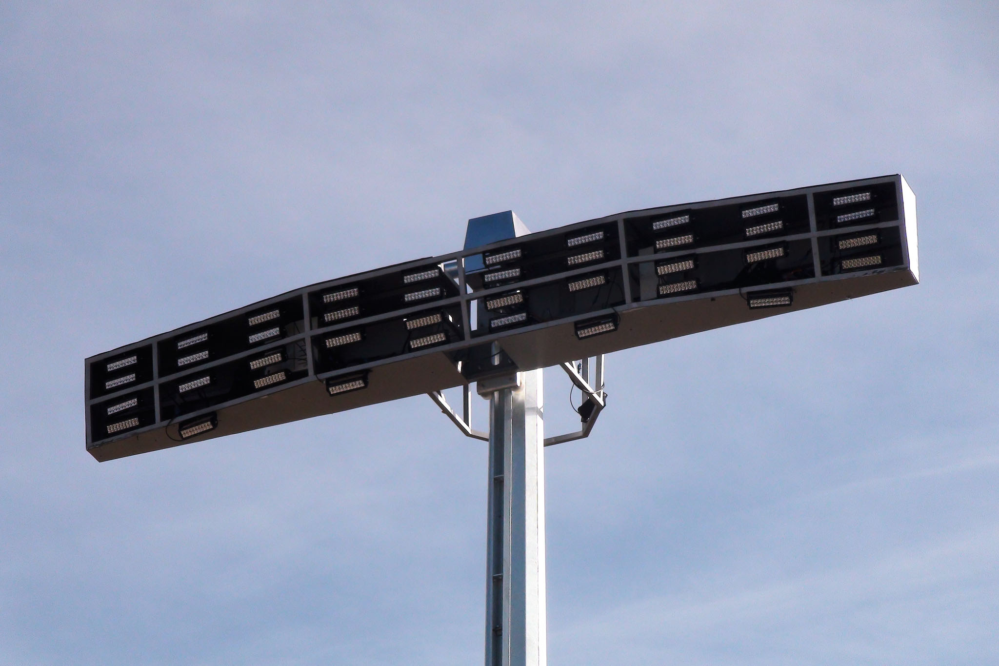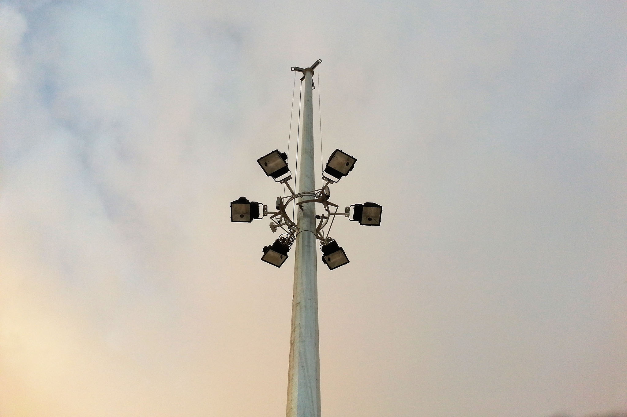 Single side oriented projectors - with 3 rope - are raised and lowered with winch mechanism. Suitable for area, car parking, airport, market place, road lighting. High mast pole system has automatic top latch system. Also completely safe with rail brake through raising and lowering procedure.
